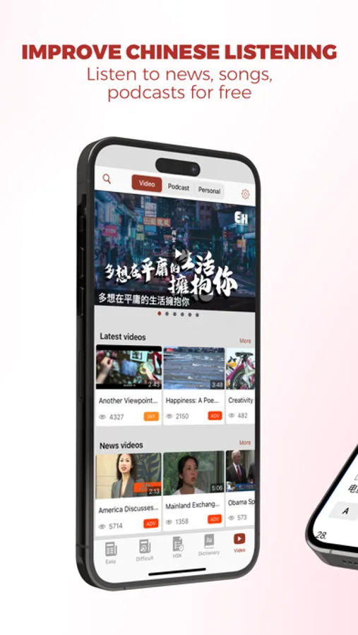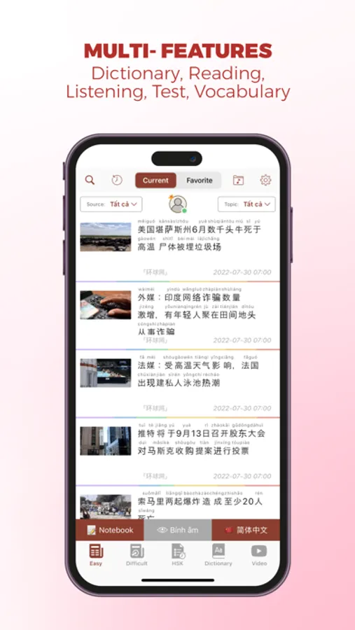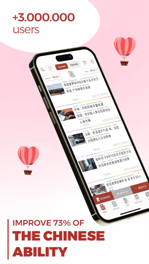 - Increase Chinese reading comprehension, familiar with the hottest topic: sport, business, music... from easy to advanced