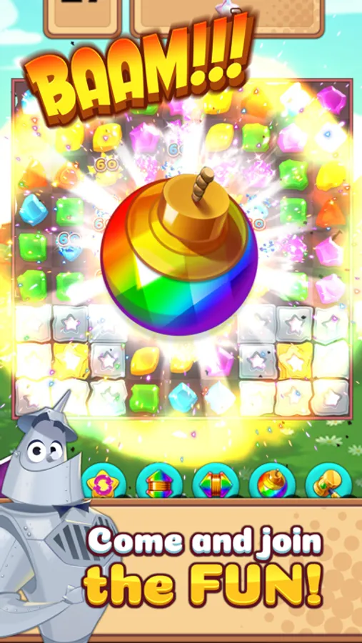 Get ready to level up with bonus moves, rocket gems and bombs.