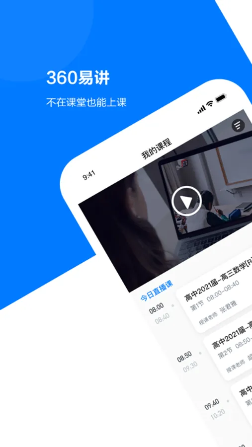 “易讲”是360智汇云基于360智能摄像机和360视频云的能力,打造了一款面向学校的教学产品,通过音视频技术+360摄像机实现教室内外同步教学,解决教室外学生同步上课的诉求。平台的建设初衷是为使教学过程更从容、有序的进行,让校园外的孩子更逼真的体验远程同步上课同时让教室内的授课教师无感的兼顾缺勤孩子学习。