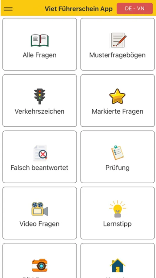 Viet Führerschein App ist eine treibende Theorie-Lernanwendung für die in Deutschland lebende und arbeitende vietnamesische Gemeinschaft. Die App mit zweisprachigem Deutsch-Vietnamesisch hilft den Vietnamesen bei der Vorbereitung auf den fahrtheoretischen Test mit den neuesten Fragen und Prüfungen von TÜV und DEKRA! (Viet Führerschein App là ứng dụng học lý thuyết lái xe dành cho cộng đồng người Việt đang sinh sống và làm việc tại Đức . App có song ngữ là Đức-Việt sẽ giúp cho người Việt trong việc ôn luyện thi lý thuyết lái xe với các câu hỏi mới nhất và các bộ đề thi của TÜV và DEKRA !)