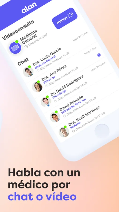 Alan Teleconsultas te permitirá hablar con un médico cuando lo necesites y estés donde estés a través de tu teléfono. Podrás hacer videollamadas con un doctor para cualquier consulta de medicina general, y utilizar el servicio de chat para consultas referentes a más de diez especialidades médicas. Desde la app también podrás acceder a tu historial médico y las prescripciones que te recete el doctor.