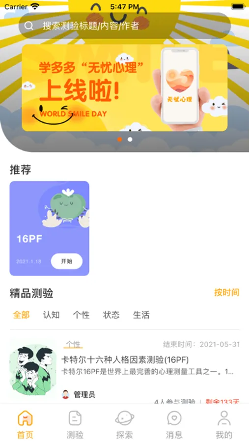 心理无忧为你提供丰富的心理品质测量工具和匠心编创优质内容;让你获得便捷有效的心理健康百科资源;让你学会情绪管理,提升学习力;为你多维视角,增进自我和他人认识,以及优化自己的心理品质提供保证。
