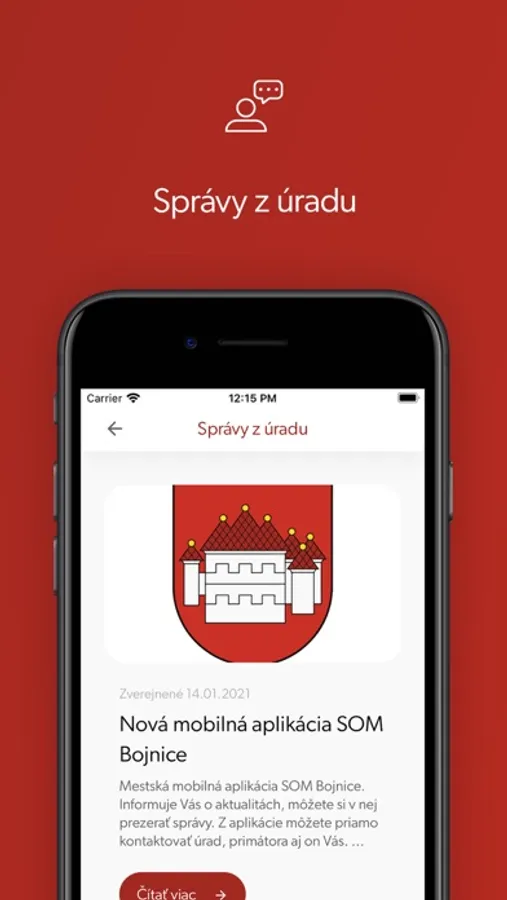 Mobilná aplikácia SOM pre Bojnice. Informuje Vás o aktualitách, môžete si v nej prezerať správy od Vášho primátora. Z aplikácie taktiež môžete priamo kontaktovať mestský úrad, primátora a on Vás. Aplikácia je neoficiálnou aplikáciou mesta Bojnice.