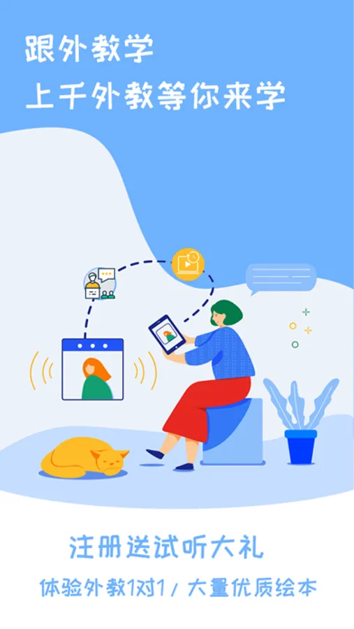 跟外教学是一家专注于英语学习的在线教育平台,真人外教1对1,每节25分钟。内含丰富优质的英语绘本、英文广播等英语学习资料,学员可以随时随地绘本故事,练习每日听力。教程涵盖了成人的学习需求,学员可自主查询外教信息、外教证书并且选择外教,自由切换,学习无忧。