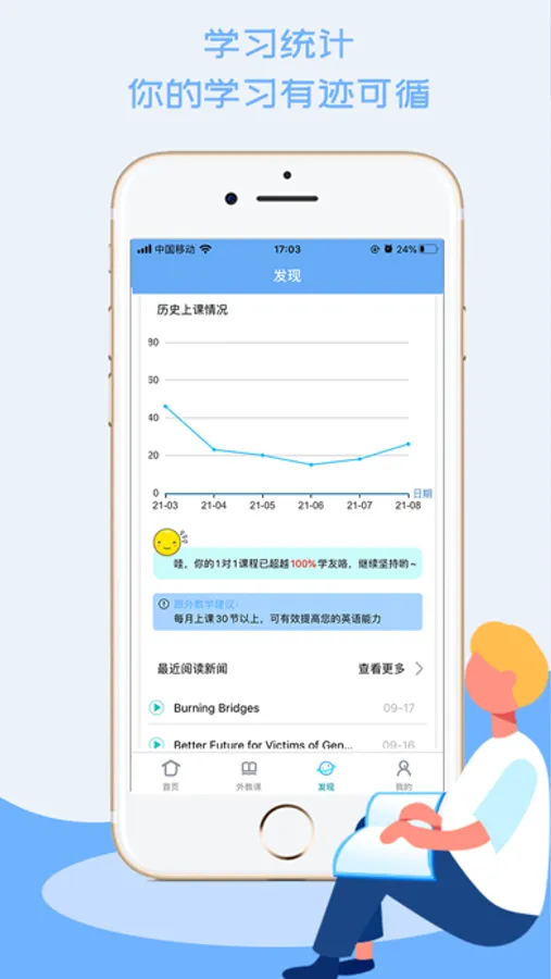 【定制教材】根据您的需求以及兴趣智能匹配教材,量身定制,依据12个等级细分学习水平,制定提升计划。