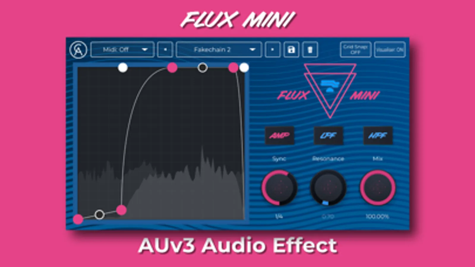 Flux Mini is an AUv3 audio effect that adds life, character and dynamism to your tracks. The customisable graph creates a shape which affects either the amplitude, low-pass filter or high-pass filter. You can emphasize the frequency modulation with the resonance knob too!
