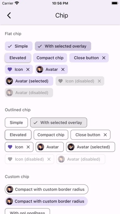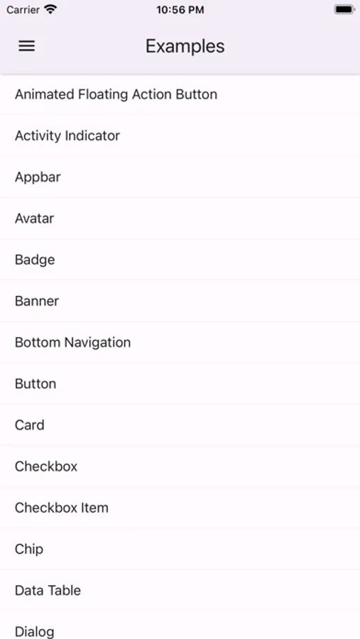 An example application of React Native Paper library. It shows available components and allows trying them out.