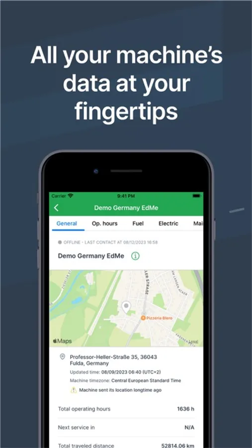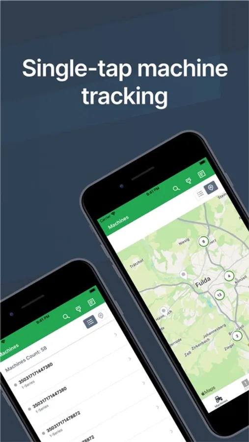 Using your mobile device, you can briefly check where exactly your machines are located and how efficiently they are working.