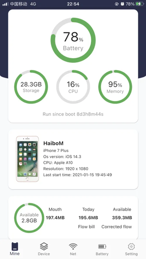 It can help you view mobile phone hardware information, understand the real-time status of mobile phone usage, mobile traffic usage statistics...