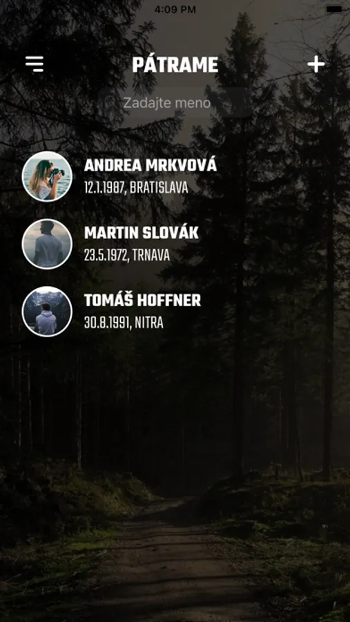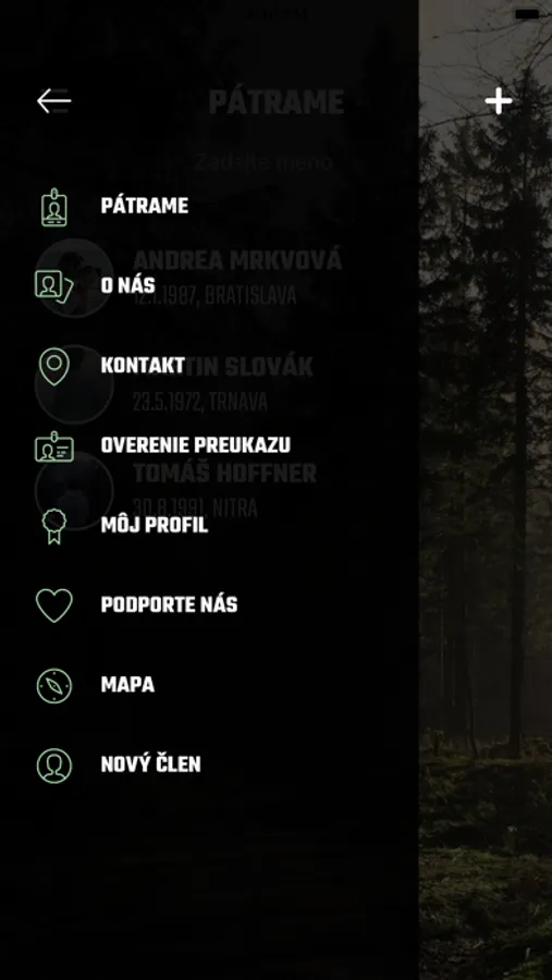 Ak nám chcete nahlásiť napr. nezvestnosť Vášho rodinného príslušníka, môžete tak urobiť jednoducho pomocou tlačidla (+), ktoré nájdete v pravom hornom rohu aplikácie. Dôsledne vyplníte všetky známe informácie, pripojíte aktuálnu fotografiu a dáte odoslať.