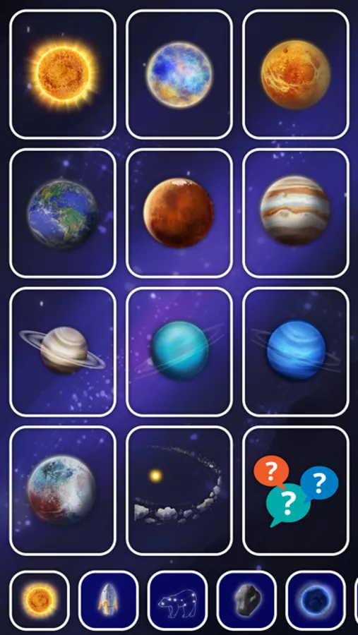 This app for kids is the child's first idea of our vast Universe, planets, solar system, stars, constellations, astronomical objects and space technology.