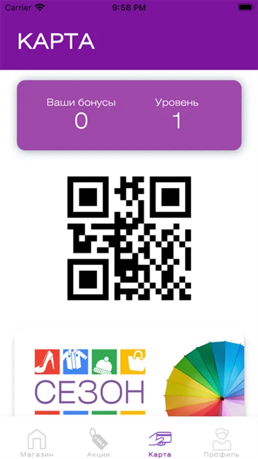 Мобильное приложение позволит стать участником программы лояльности СЕЗОН.