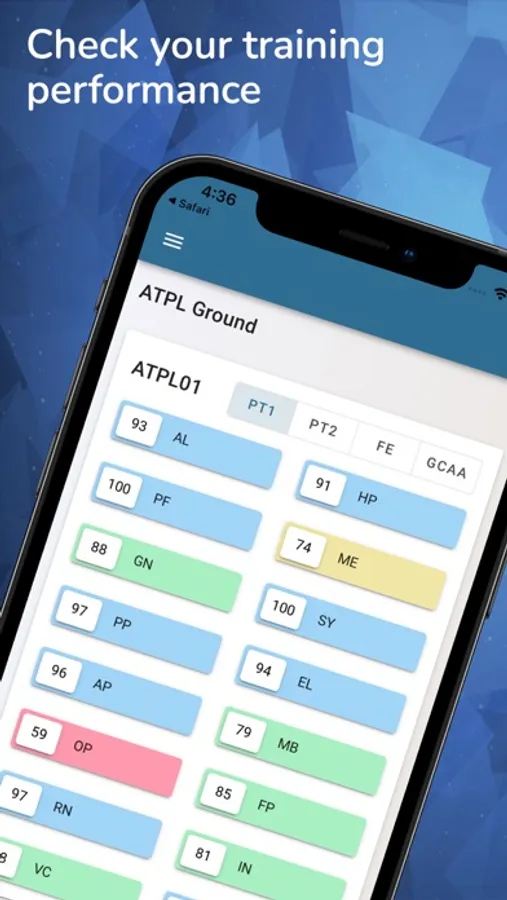 Students can view their training results and be notified in real-time about changes to their training records. Trend indicators allow students to assess their performance in relation to their peers.