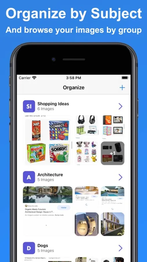 Create your own galleries, grouping your screenshots by subject for easier browsing and keeping your content organized