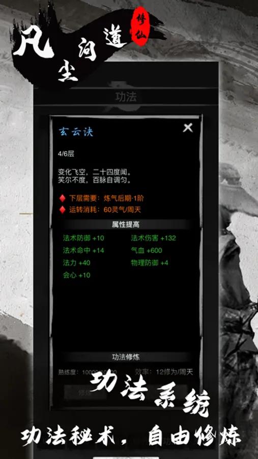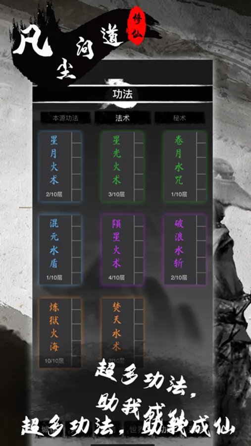 除了可修炼本门派功法,还有更多散修功法可修炼。