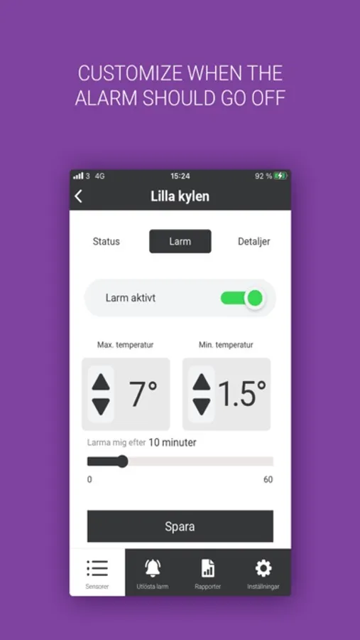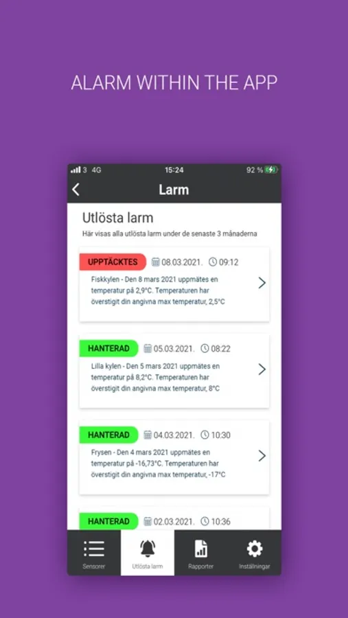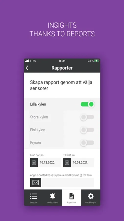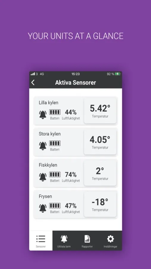 Get reports that give a smart overview of the temperature graphs on your sensors and the alarm log on each sensor. Use the reports to. increase the sustainability of your food and optimize the energy consumption of your business.