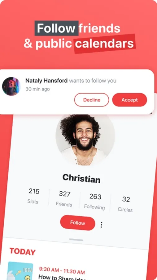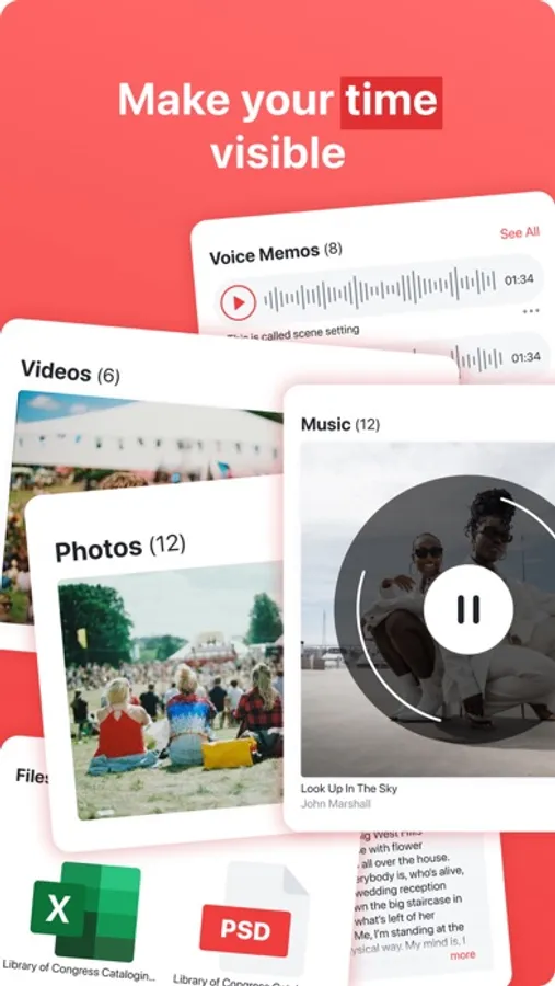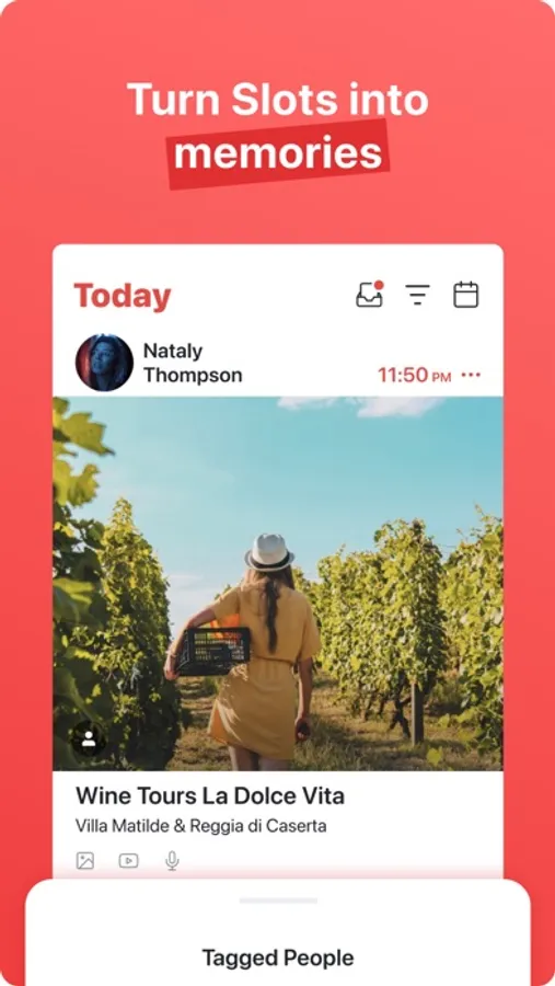 Add photos, videos, voice memos, files, music, location and notes to your Slots. Tag friends or create circles to share your Slots just with them.