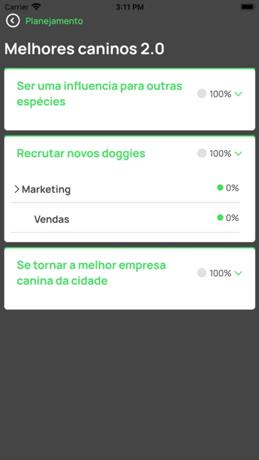 Monitore seus planejamentos com todos os projetos, indicadores e progresso.