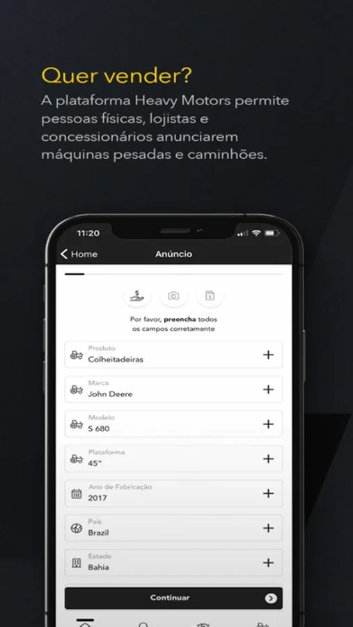 Da sua propriedade, revenda ou concessionária para o país inteiro. Isso mesmo, com a Heavy Motors você pode colocar seus equipamentos à venda para todo o Brasil, com poucos cliques, ter maior alcance, mais visualizações, mais oportunidades e os melhores negócios.