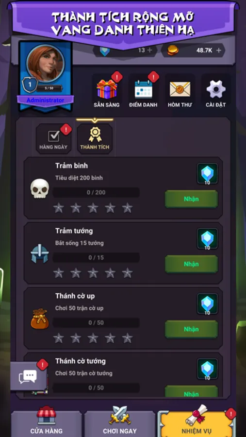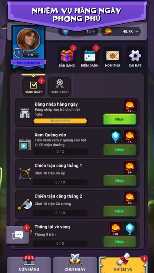 Hệ thống thành tích, nhiệm vụ hàng ngày cực kì phong phú.