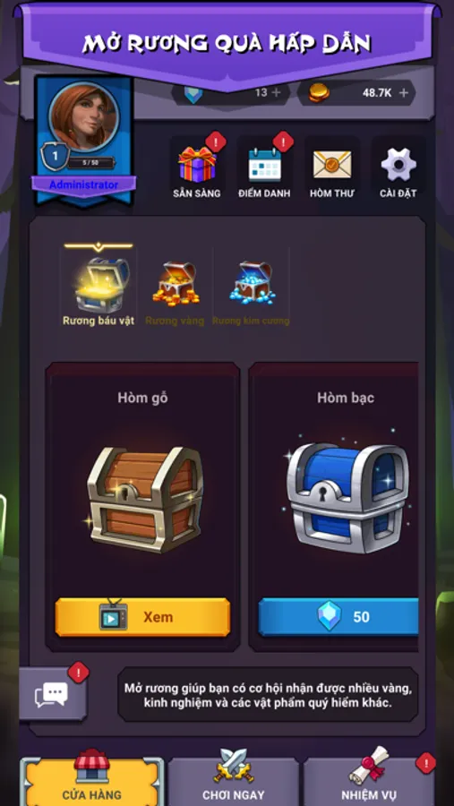 Hệ thống mở rương quà và vòng quay may mắn mang lại nhiều phần thưởng xịn xò.