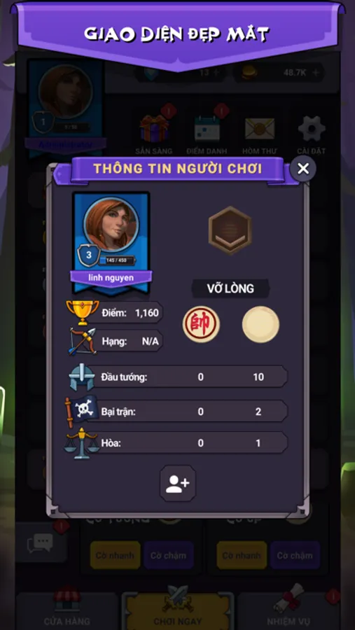 Là trò chơi trực tuyến 100%, không có máy, đối thủ là người chơi thật tương xứng cấp độ.
