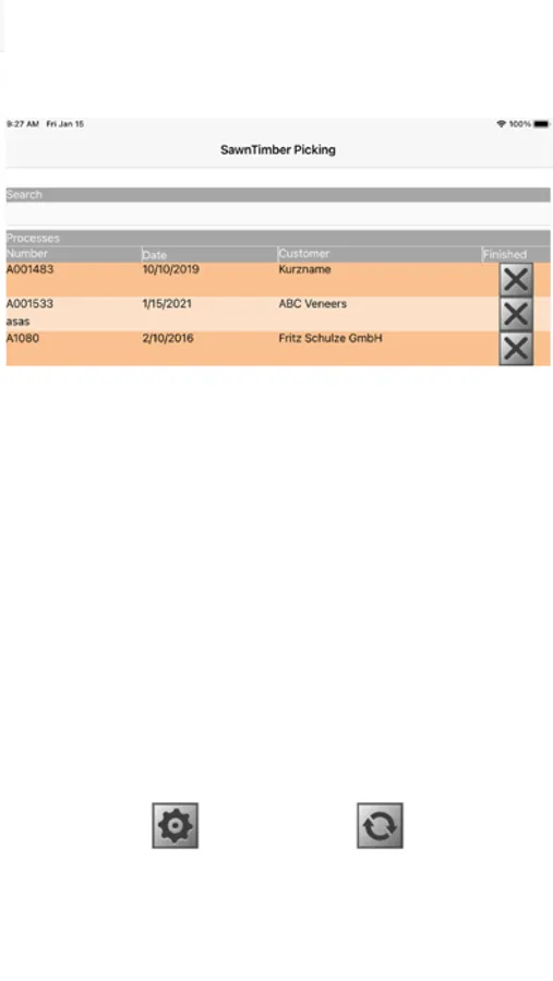 This app is for the picking of sawn timber from the warehouse into a customer order. Add boards by scan or manual input. With the ability to measure back the boards.