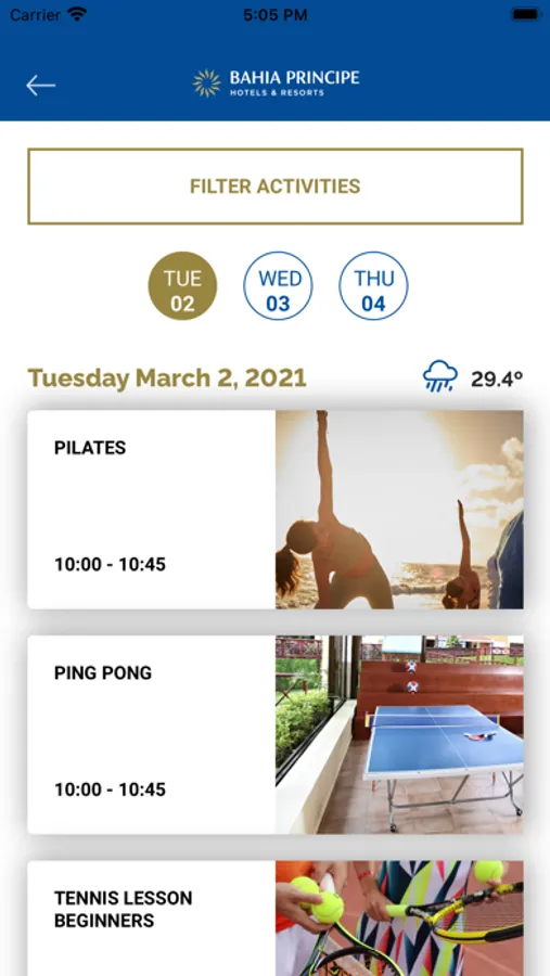 Access up to 5 days before your arrival at the hotel and start organizing your vacation days.
