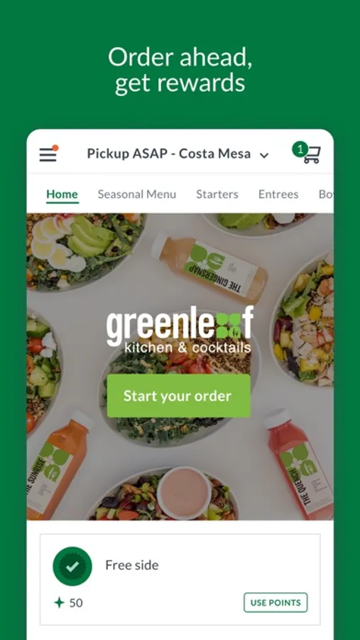 Download the Greenleaf app to place an order and earn rewards and other perks!