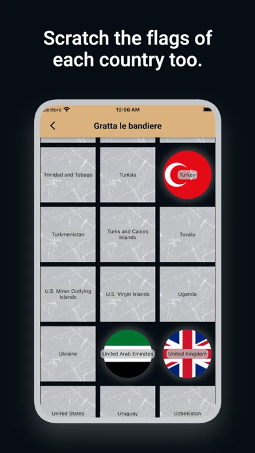 You can scratch the continent maps and the flags of each country. Like a real scratchable map.