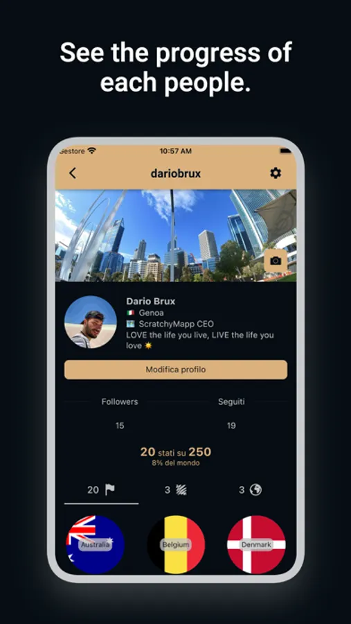 Scratch all places you have visited and see what your followers have scratched. Don't worry if your progress is slow, you will have all the time to visit all countries. A day you will scratch all over the world!