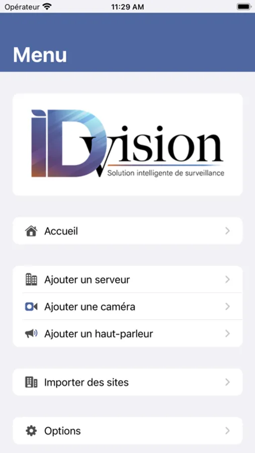 Visualiser depuis votre iPhone ou votre iPad les caméras de votre serveur d'enregistrement ID-Vision. Il est également possible de configurer et utiliser des caméras de nombreuses marques différentes: Axis, DLink, IQeye, Mobotix, Sony, Vivotek