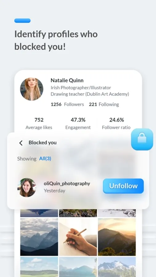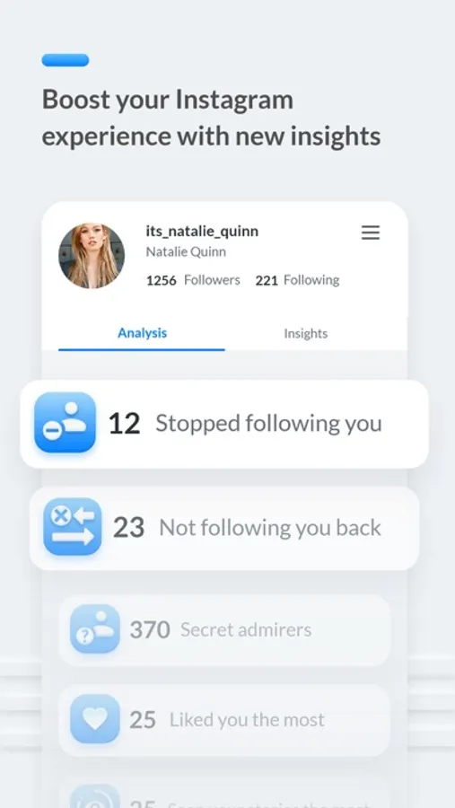 - Get Insta analytics insights on your most and least popular ig stories, posts and any user who follows you