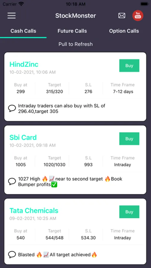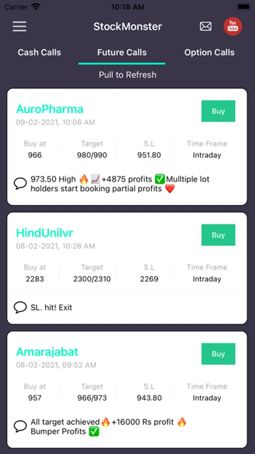 This app provides calls in equity cash, option, and futures: including bank nifty and nifty calls (intraday calls, BTST Calls, short term calls, medium-term calls, and long term investment calls) in order to help our members to earn maximum return on their invested capital.