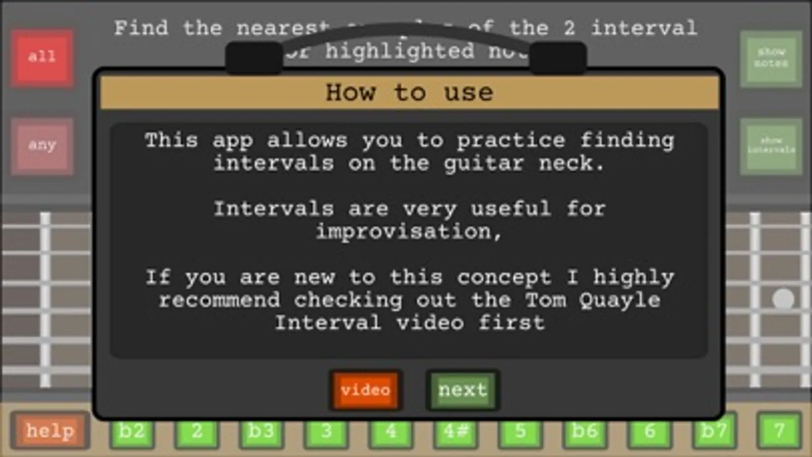 Inspired by the Tom Quayle interval method, 'Guitar Interval Trainer' is a useful way to learn and practice all the interval shapes.
