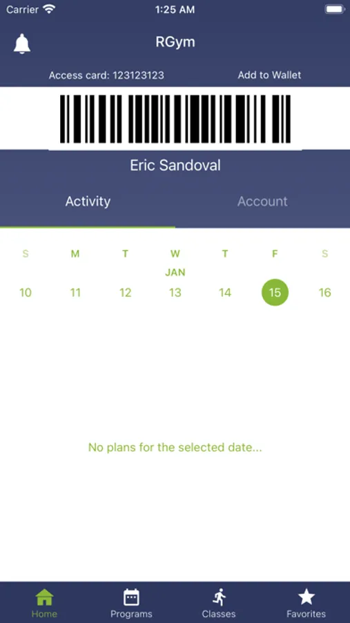 • Create favorites for classes and view the activities you are registered for