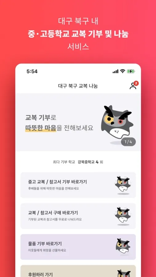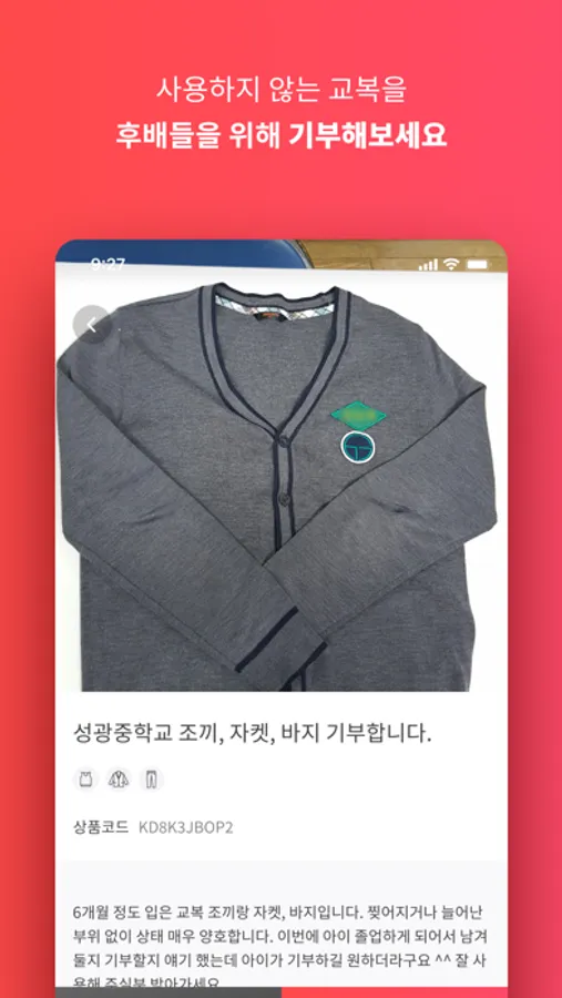 대구광역시 북구 소재 중고등학교 교복을 기부하고, 무료로 구매해보세요