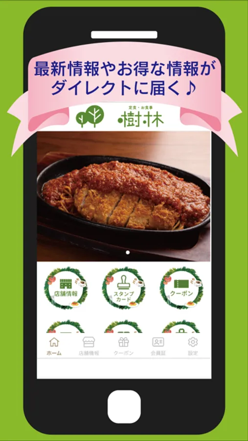 「カフェ&ダイニング樹林」公式アプリでは、店舗の最新情報やアプリ限定のお得なクーポンを随時配信しています。