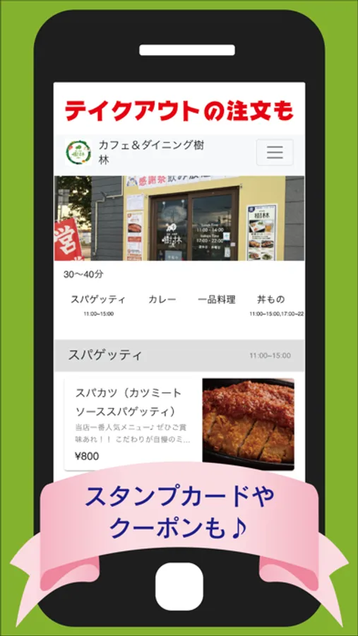 お得で便利・簡単な、公式アプリをダウンロードしていただき、当店自慢のスパカツやカレーを是非ご賞味下さい!