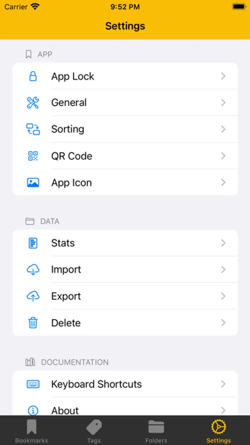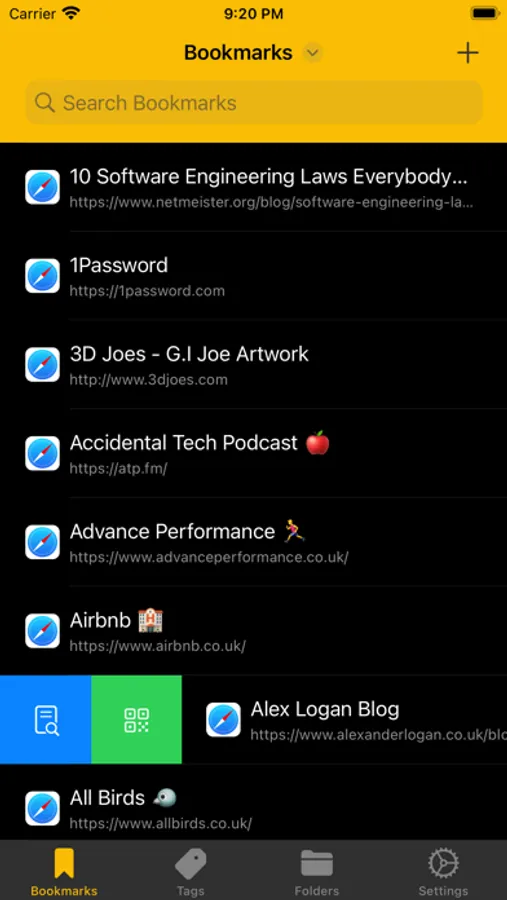 - Create QR Codes in a variety of colours for your bookmarks. You can view or share the QR Code from the bookmark detail view or with a left swipe / long-press on a bookmark.
