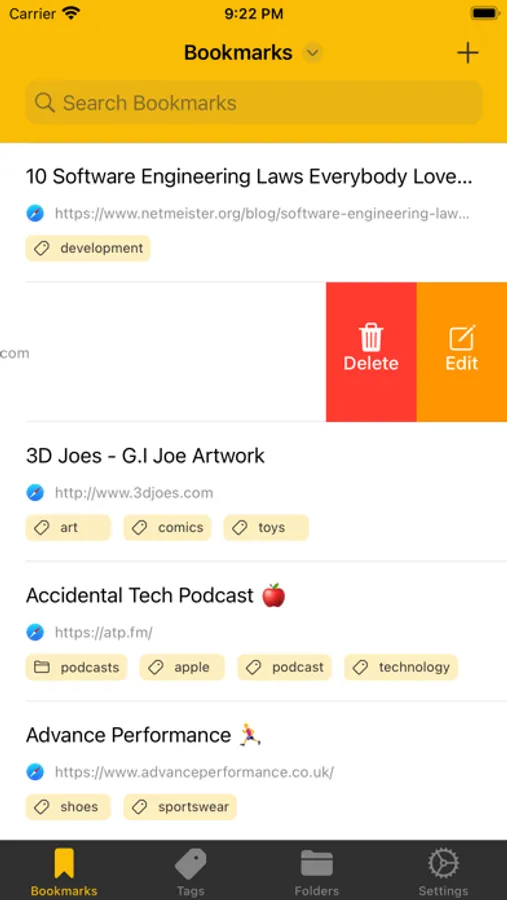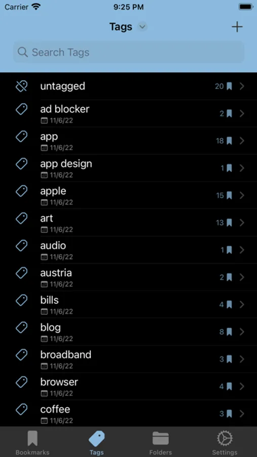 - When you choose a bookmark style that shows its tags, you can navigate to that tag from any bookmark.