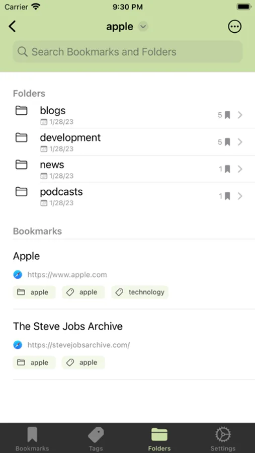 - Organise your bookmarks in folders. Folders can have as many sub-folders as you need to organise your bookmarks.