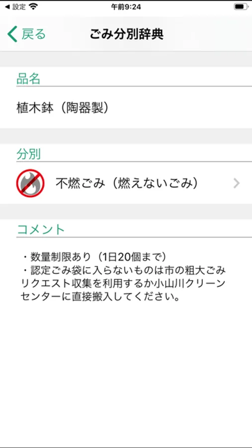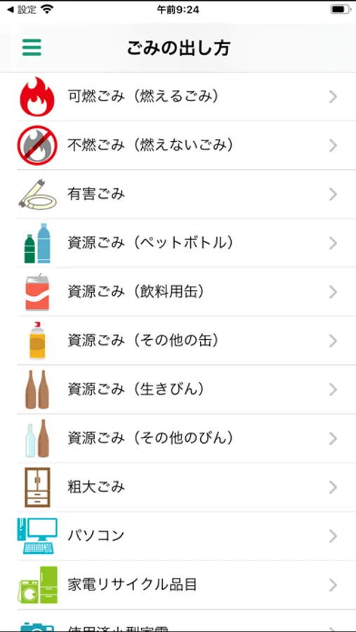 ごみの種別ごとに、主な品目と出し方を確認することができます。