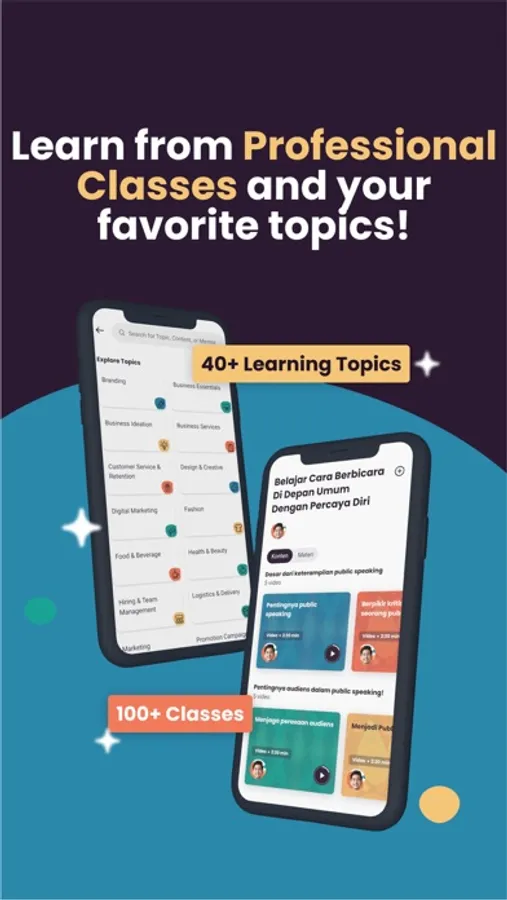 - Discover your favorite topic to learn, ranging from digital marketing, entrepreneurship, creative industry, tech & data, and many more!