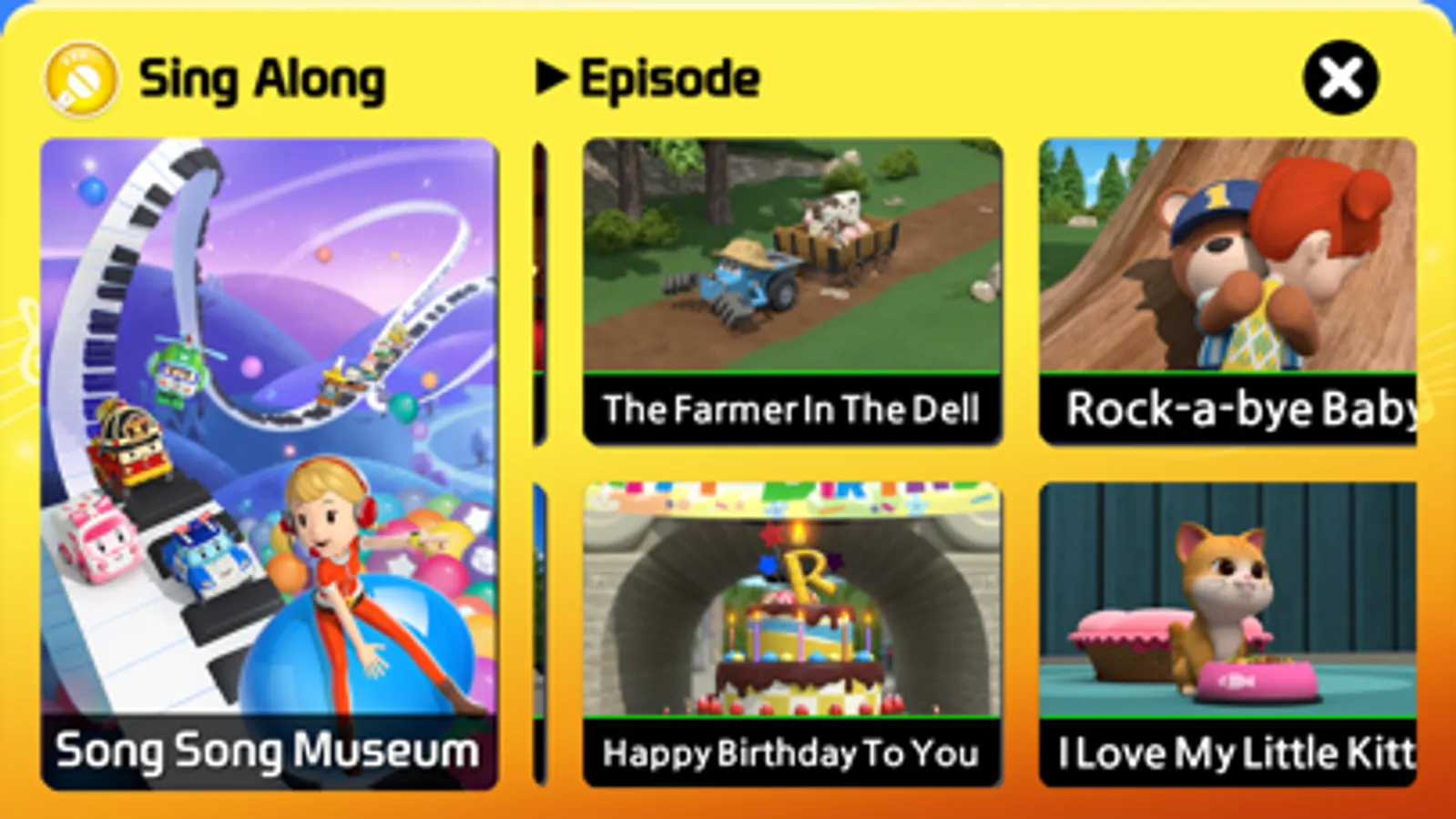 This app includes the SongSong Museum series, the latest Robocar POLI series and music videos from prior series in addition to the 8 free songs.