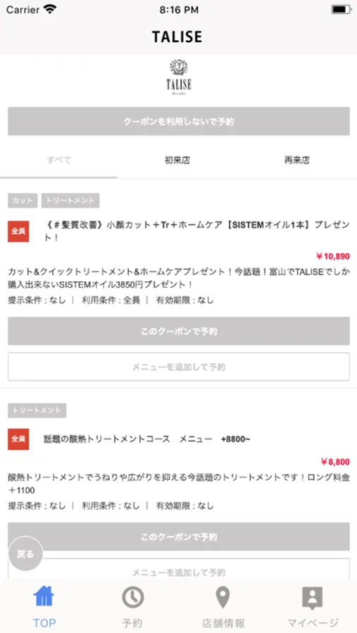お得なクーポンが配信されます。ネット予約時にクーポン利用での予約も可能なので来店時もスムーズに施術頂けます。