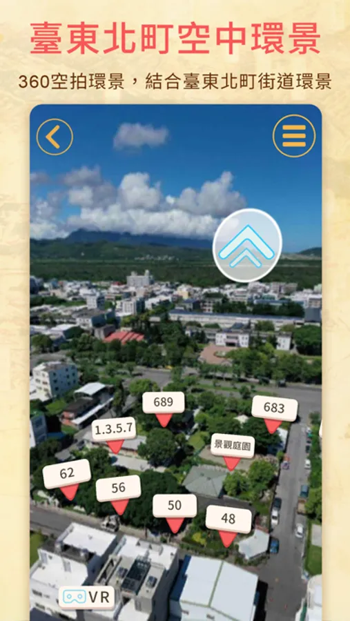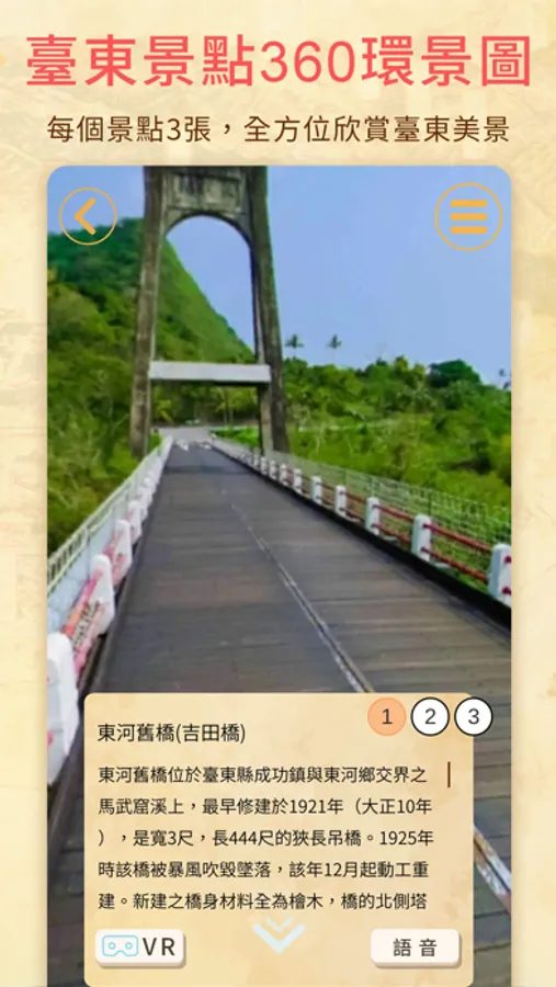 點選任意景點後可以觀覽該景點的360環景照片,提供360環景模式與VR兩種觀覽模式。