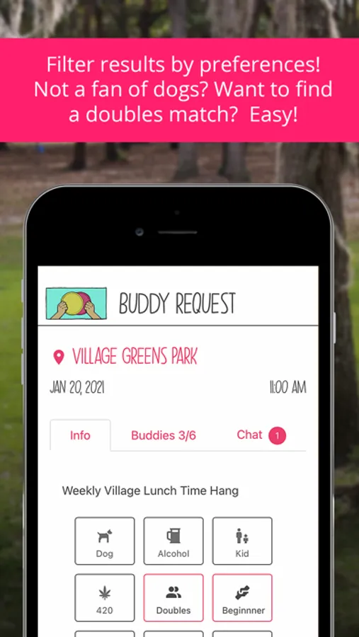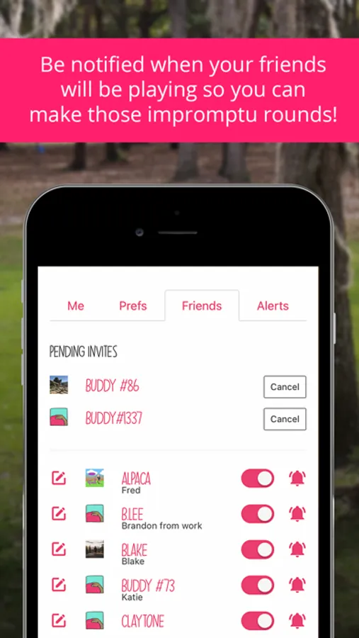 Disc Buddy is a social app that aims to do two things: Find new disc golf buddies, and know when your existing ones will be playing. You can add courses to your favorites and be notified if someone is looking to play there. You can figure out when your buddies are going to be playing and join them. They can do the same when you feel like going out! You can filter requests and find cash games, doubles, casual, and so much more!