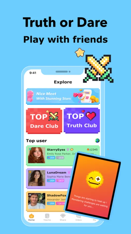 - Truth-or-Dare Matching System: Seamlessly connect with strangers through engaging games.