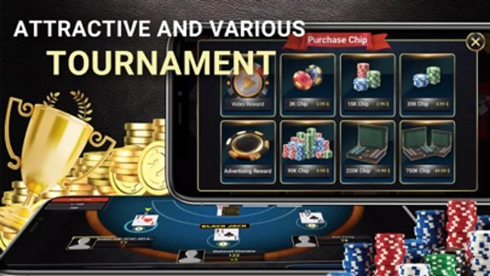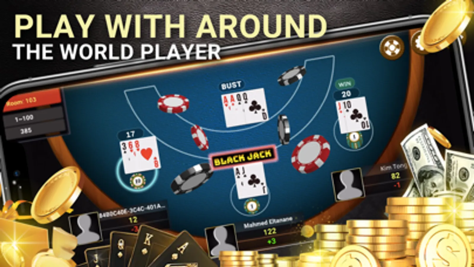 + FREE MONEY: Everyday, you will get 100 $ immediately from Black Jack.